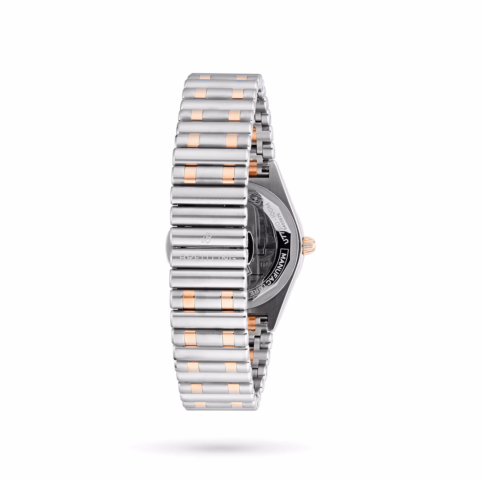 - 32mm stainless steel and 18K red gold case with the iconic Rouleaux bracelet