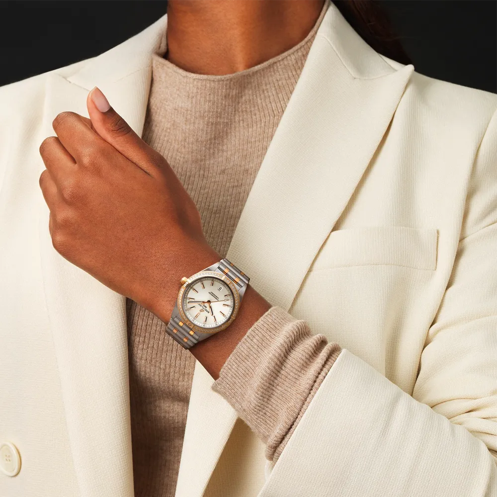 - Case material: Stainless steel & 18k red gold (gem-set)