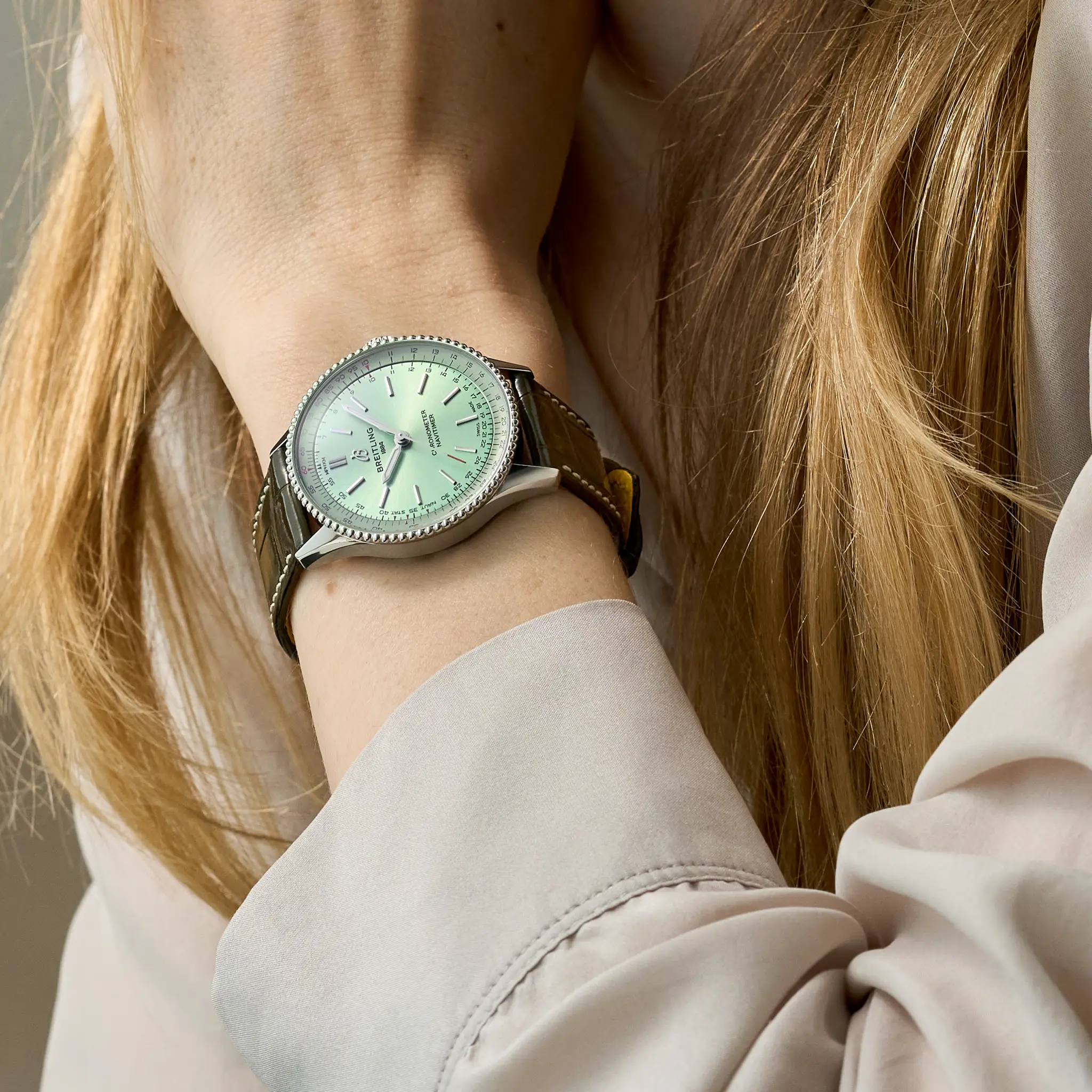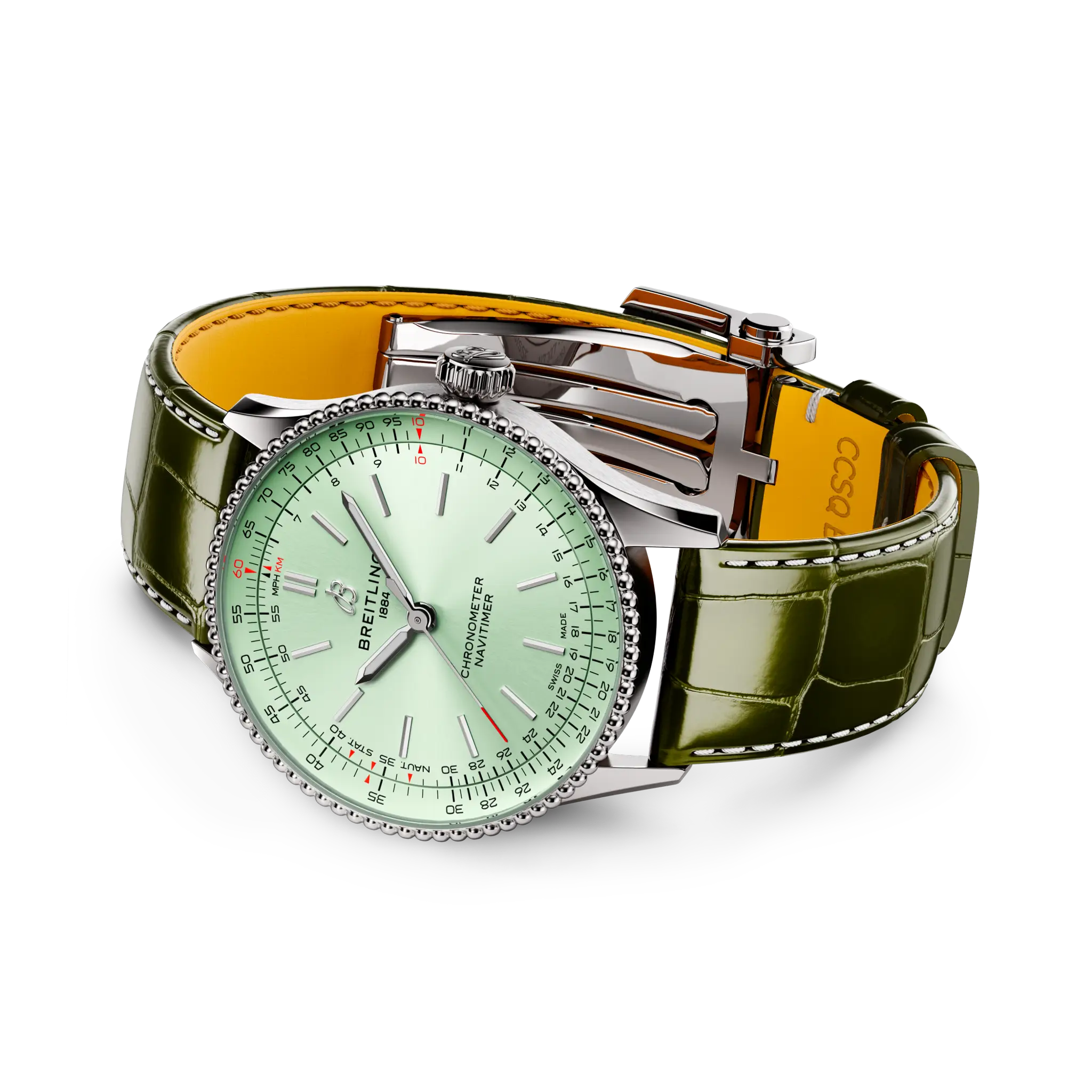 Alligator Leather, Analog, Chronometer, Leather, Stainless SteelAttention