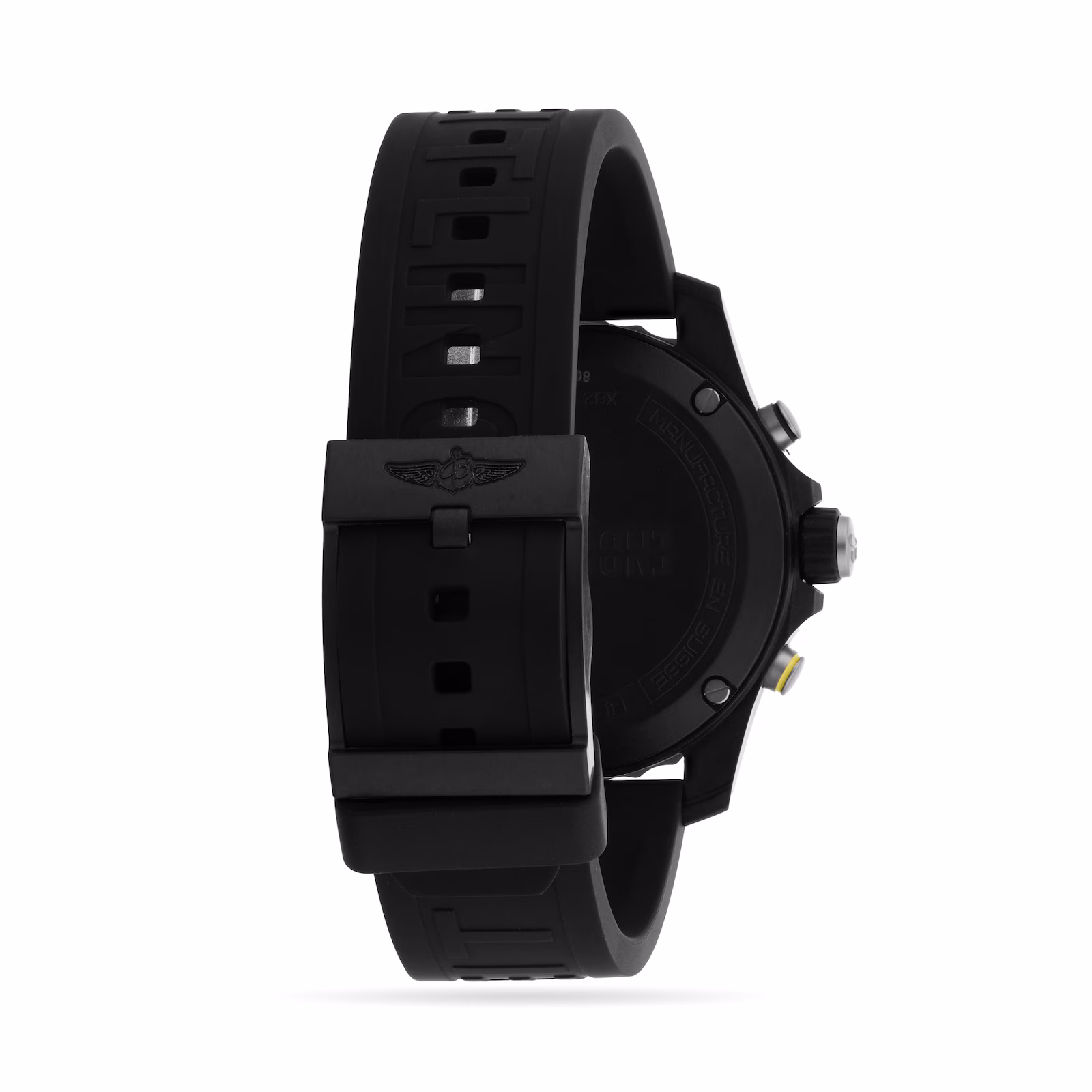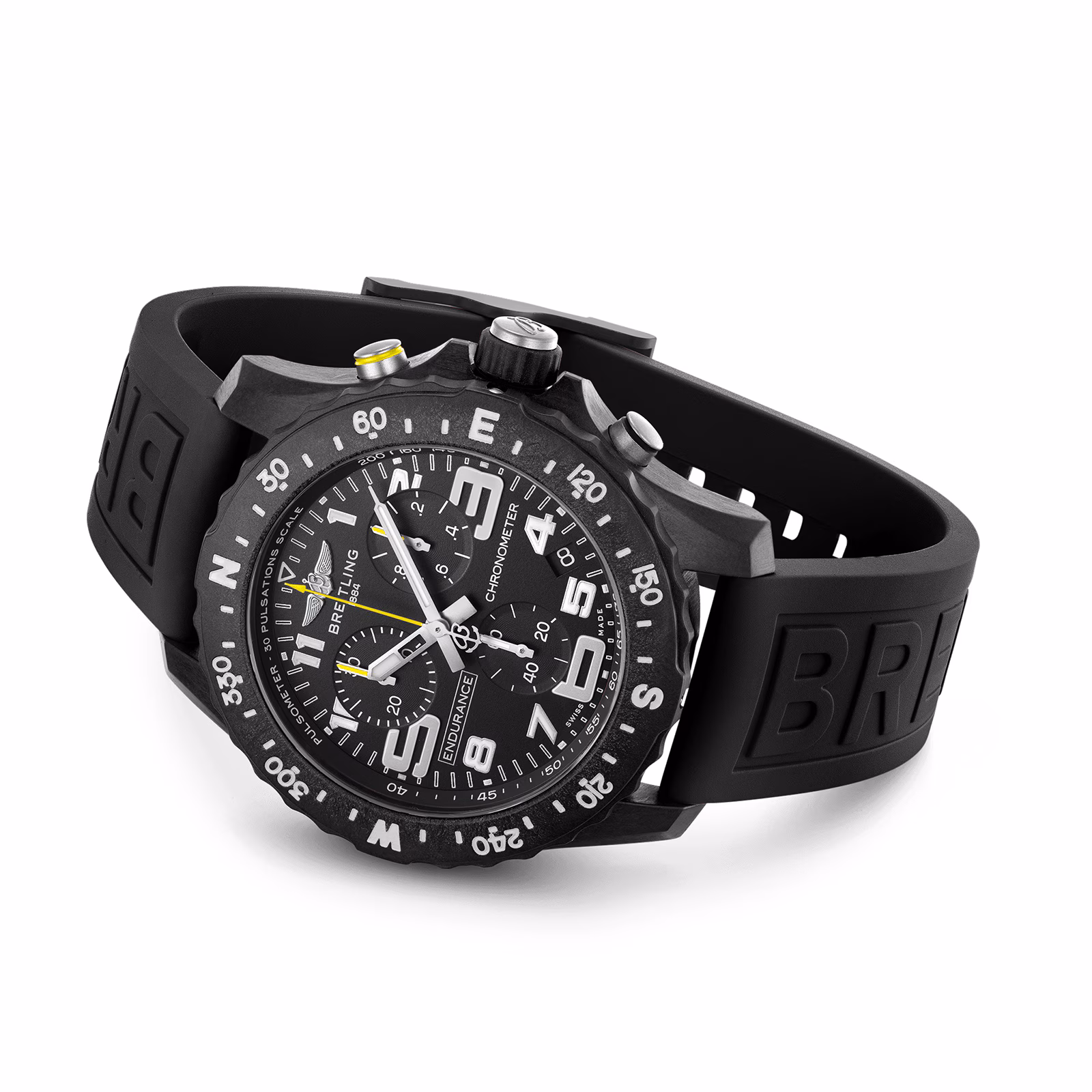 The Breitling Endurance Pro X82310E51B1S1 is a remarkable watch that is bound to attract attention. Its elegant, contemporary design showcases a 44mm Breitlight polymer case, a black dial with Arabic numerals and a date display, and a rotating bezel with a compass scale for enhanced practicality. It also features a chronograph and quartz movement for precise timekeeping. The watch is finished with a black rubber strap and tang buckle, ensuring comfort during wear. This striking watch is certified as a chronometer for ensured accuracy.