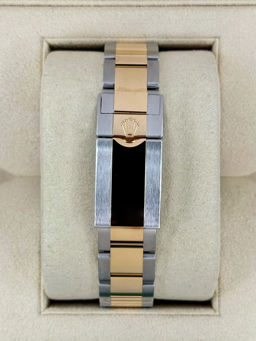 – Made with Solid 904L Grade Stainless Steel with DLC scratch-protection coating and 18k Yellow Gold plating on the middle links