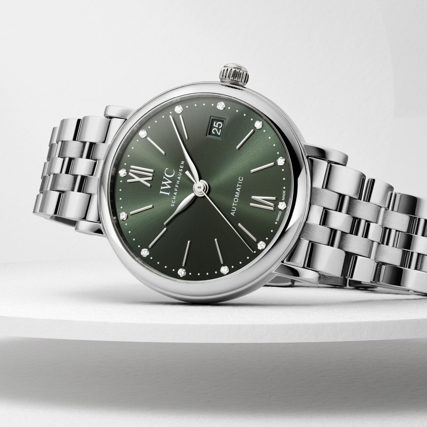 • IWC Portofino Automatic 37mm Green Diamond Dial Steel Women's Watch IW458602