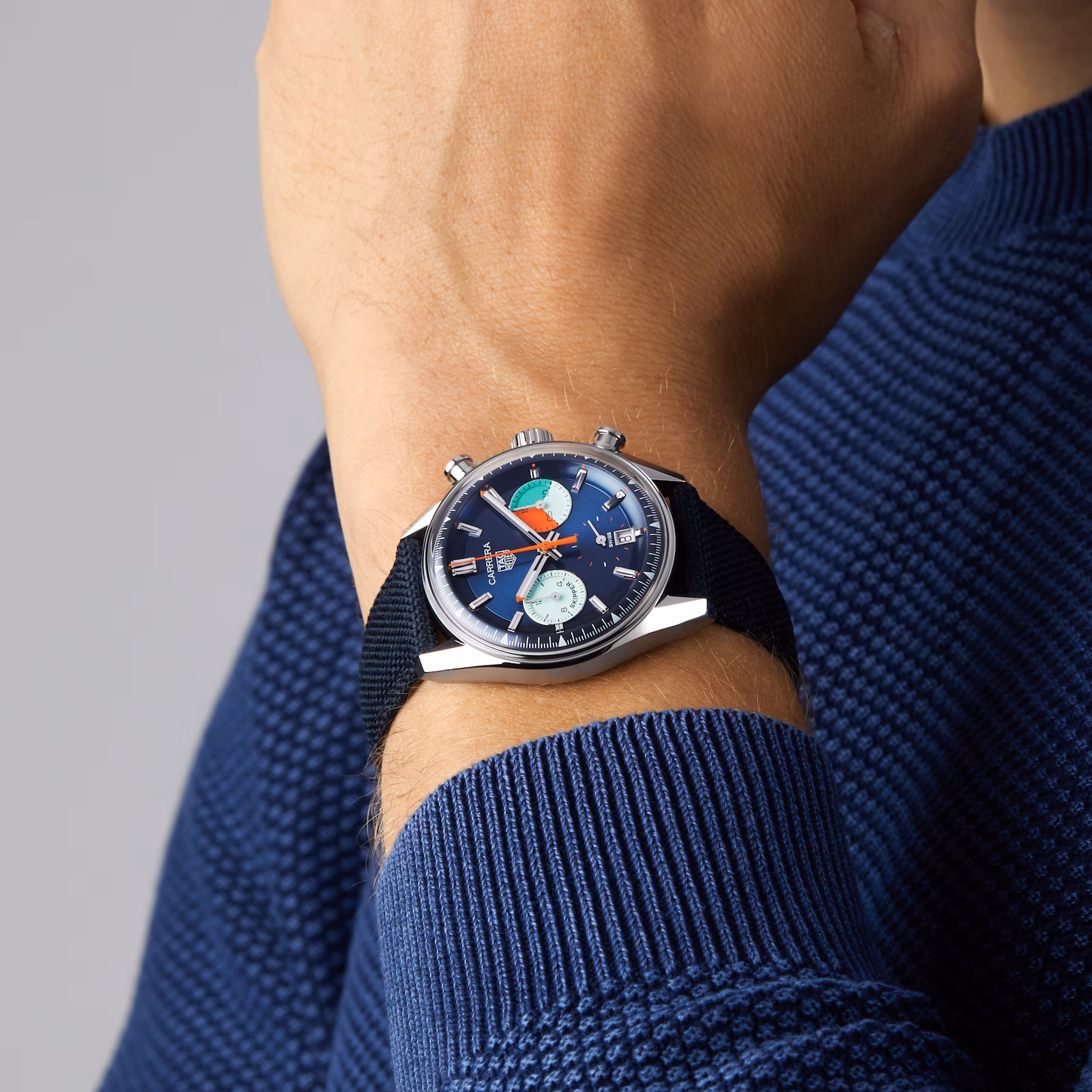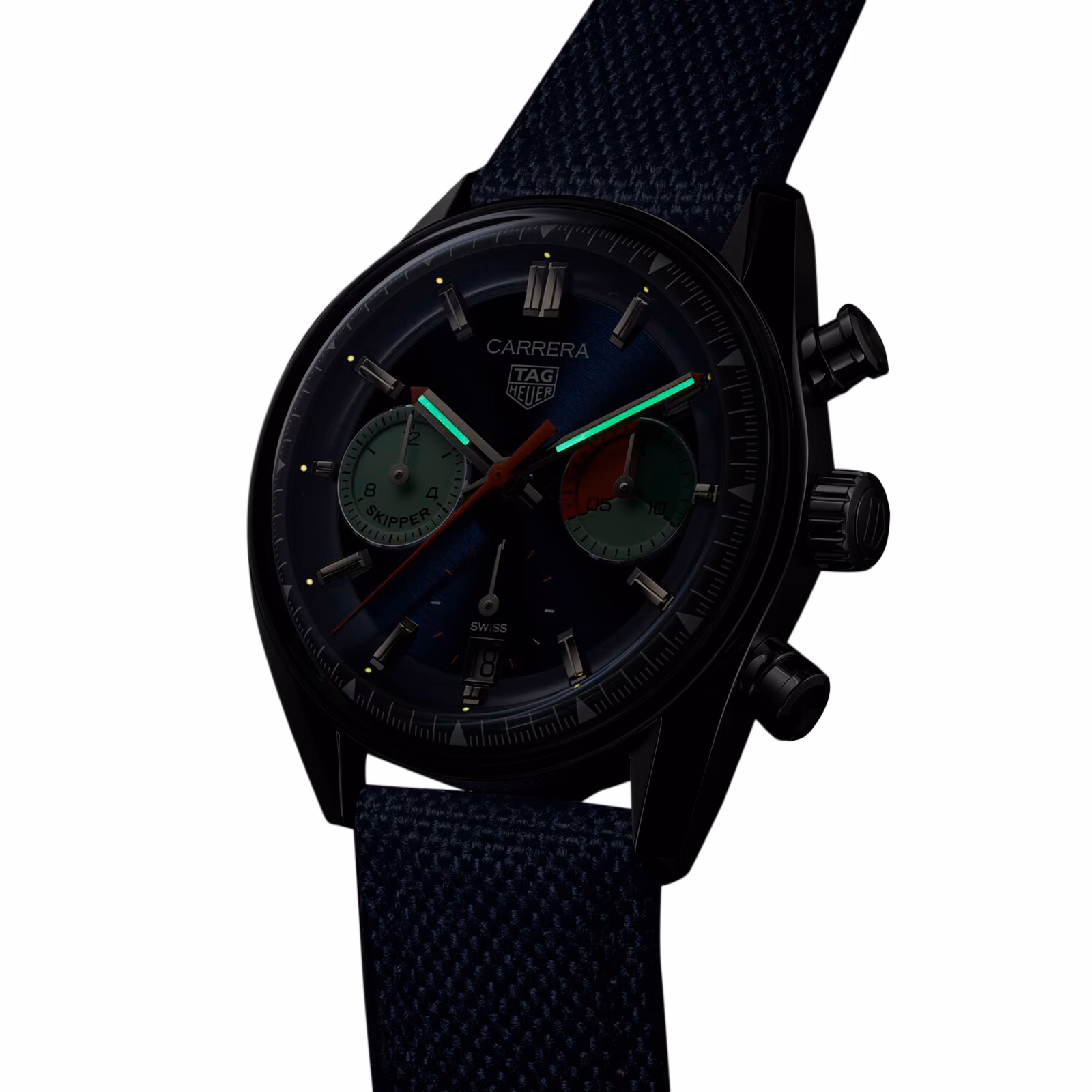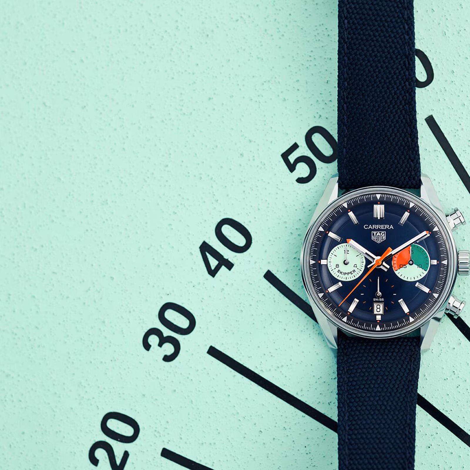 This Carrera 39mm skipper model makes a strong impression, with distinctive looks and proud racing heritage. Vivid details and colourful sub-dials add a playful yet sporting finish, while powerful inner workings promise precision and reliability both at sea and on land.